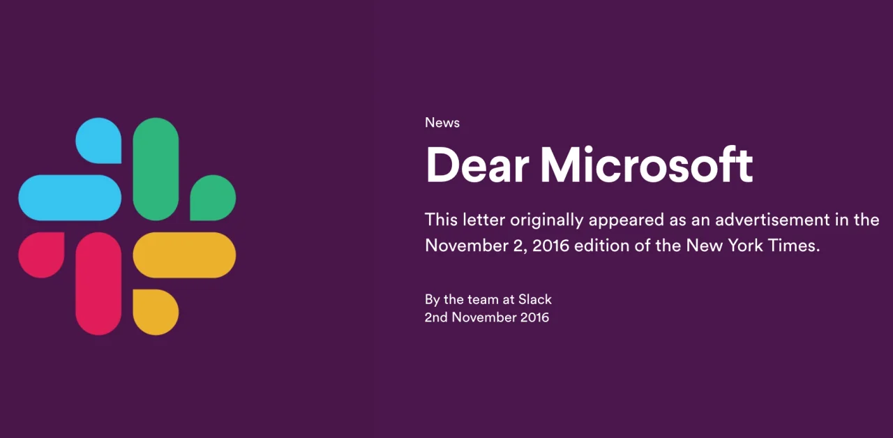 Slack explained this phenomena best when they took out an ad on the New York Times front page titled "Dear Microsoft".