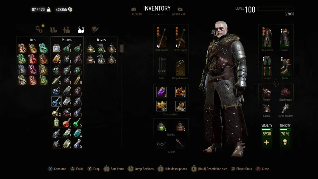 - You have a physical health bar, mental health bar, skills bar, status bar and a few others