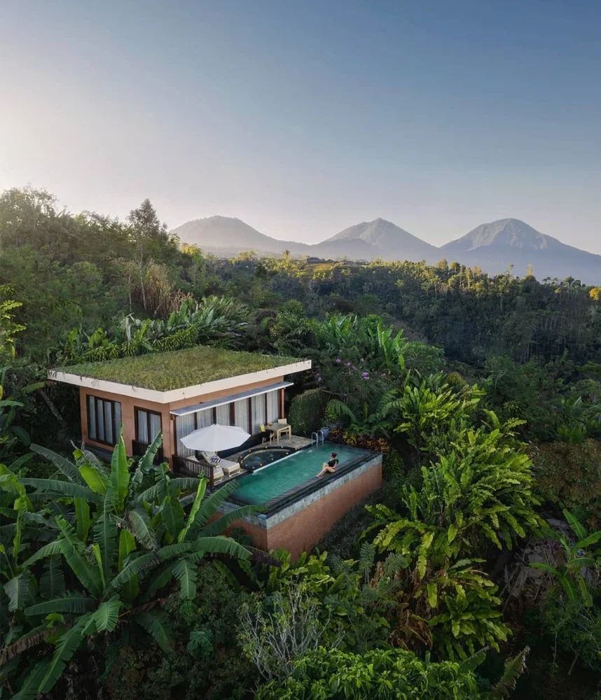 Take me to this villa in Bali where I can wake up and take a swim, sip my coffee, and write while looking at the forest.